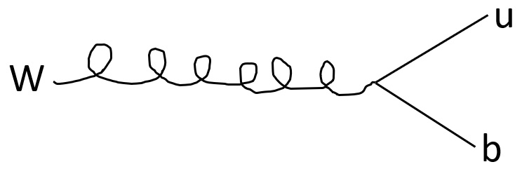 A W boson decays at rest to an up quark and a bottom quark. THe W has a mass of 80.4 GeV and the mass of the up quark can be neglected. FInd the values of the energies and momenta of the two quarks, working in natural units.